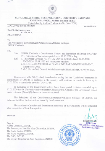 JNTUK : Extension of Lock down period up to 17.05.2020